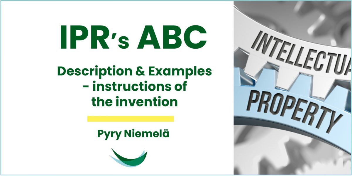 Examples are necessary when the means for carrying out the invention and the advantages achieved over the prior art are not obvious from the described function or structure of the invention alone. For example, if a patent application alleges that a lawnmower blade according to the invention stays sharper for longer, an example of an experimental arrangement can be presented, in which a reference blade and a blade according to the invention are used for a certain period of time in conditions that similar to actual lawnmowing. Finally, the example may refer to a microscope image or a graph accompanying the drawings illustrating the difference in sharpness between the two blades after the experiment.
